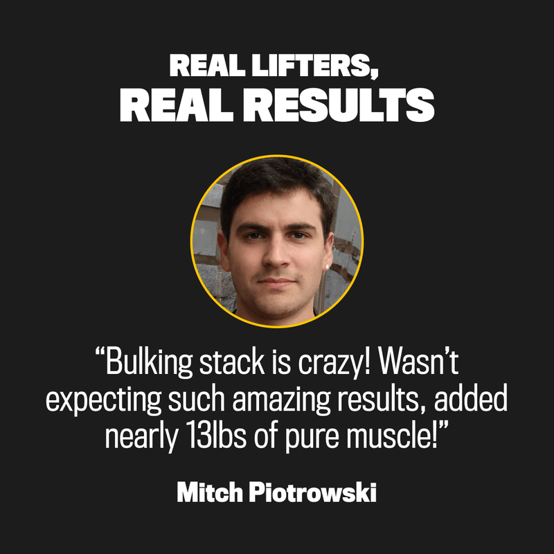 "I found it hard to bulk up but holy shit the bulking stack is great! Been using for nearly 3 months and my chest and arms are way bigger."